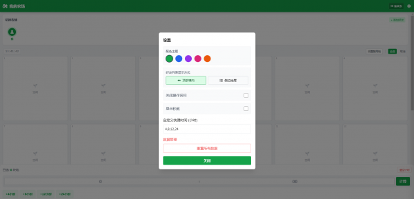 快捷时间:自定义快捷按钮(默认4/8/12/24小时),一键添加。